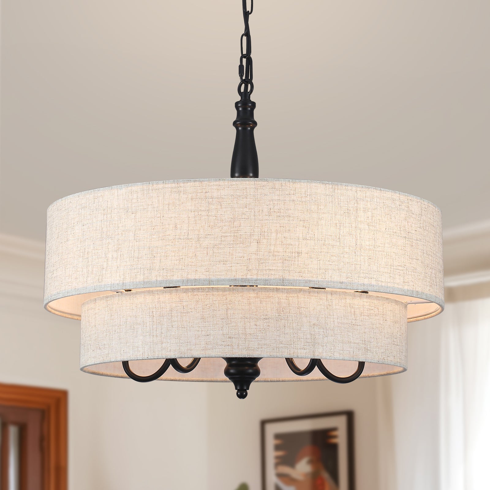 Chandelier Two-Tier Fabric Shade 5-Light