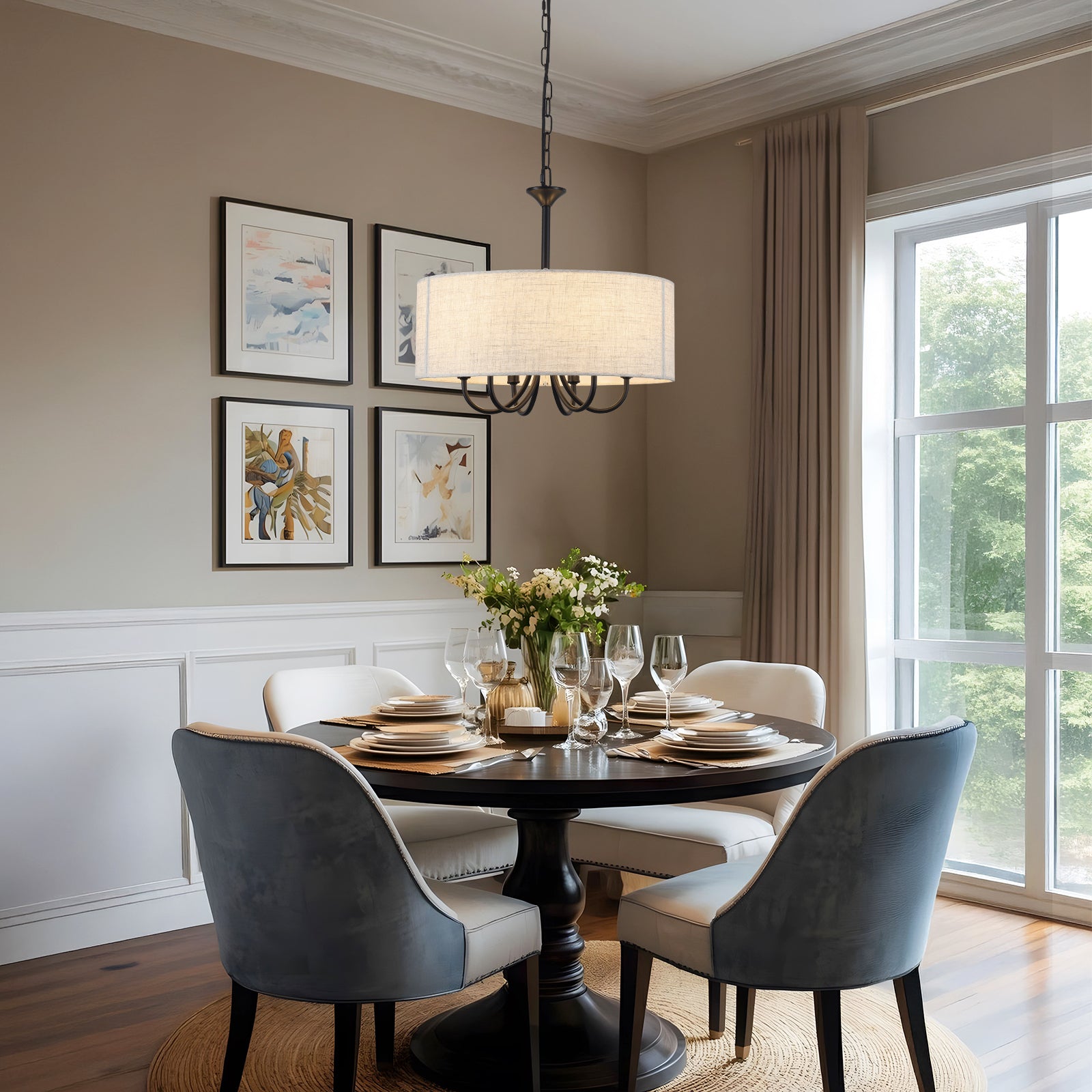 Chandelier Fabric Drum Shade 6-Light